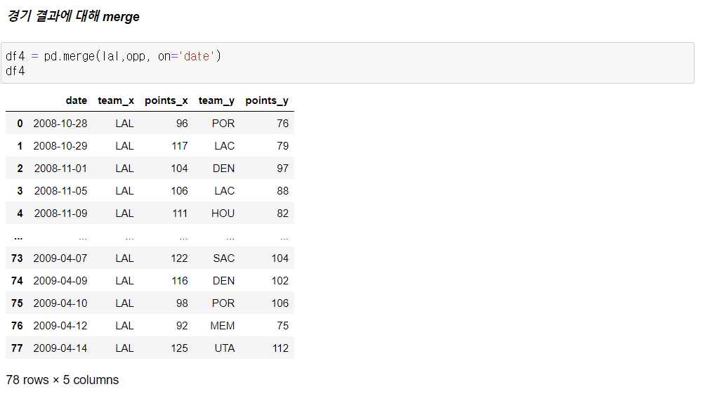 - 경기 결과 merge