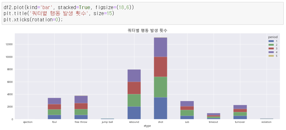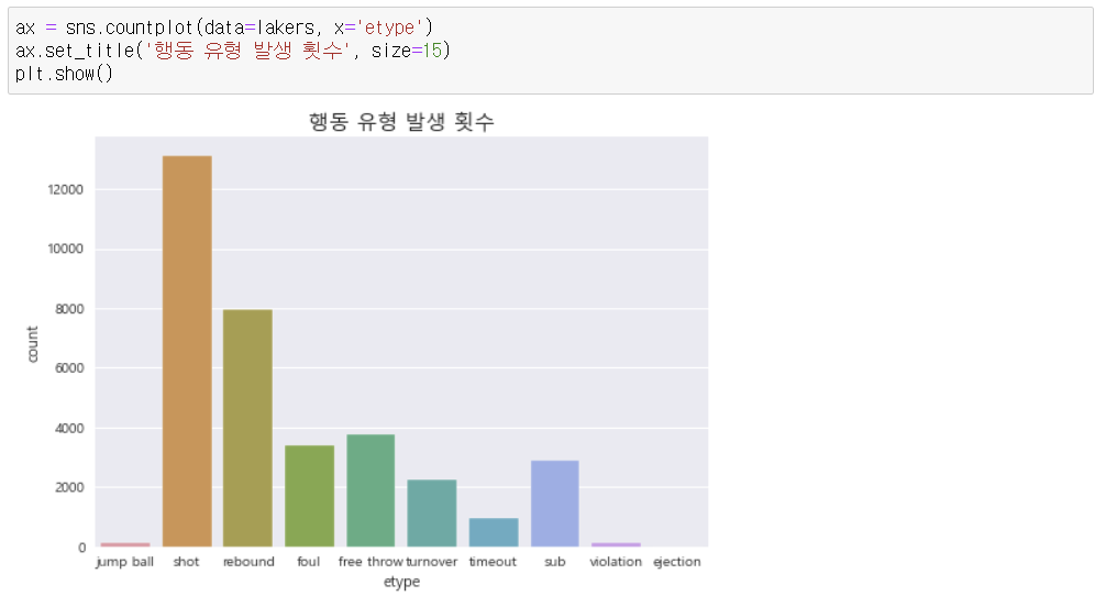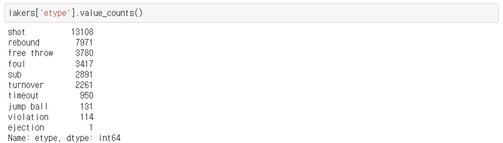 - etype : 유형(퇴장, 파울, 자유투, 점프볼, 리바운드, 슛, 패스, 타임아웃, 턴오버, 반칙)