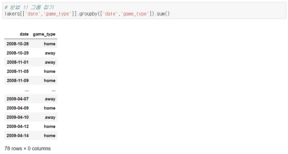 - 날짜별로 홈경기인지 원정경기인지 추출