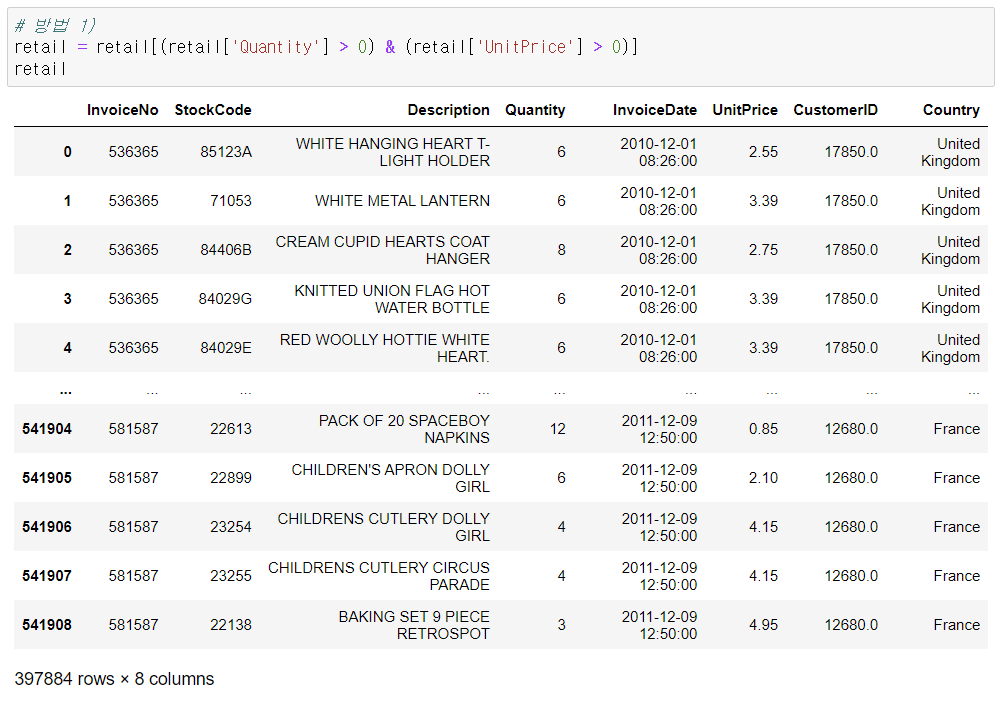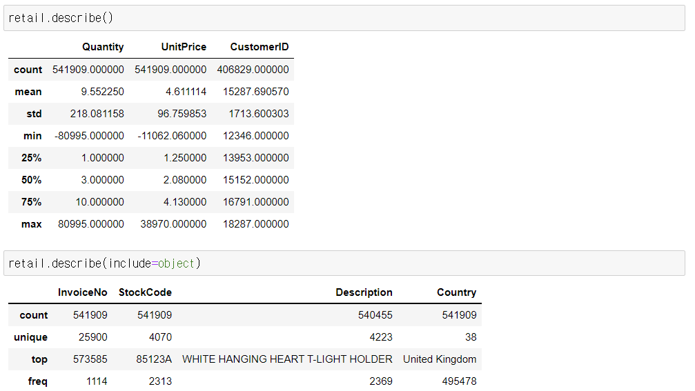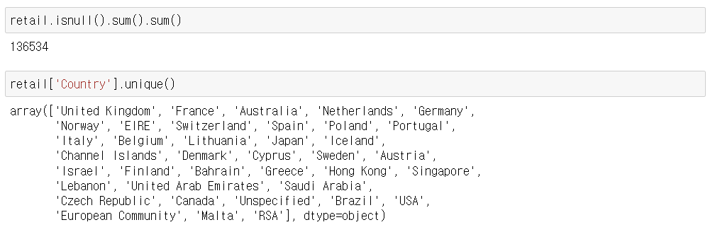 - 온라인 리테일 사이트의 2010/12 ~ 2011/12 주문 기록 데이터