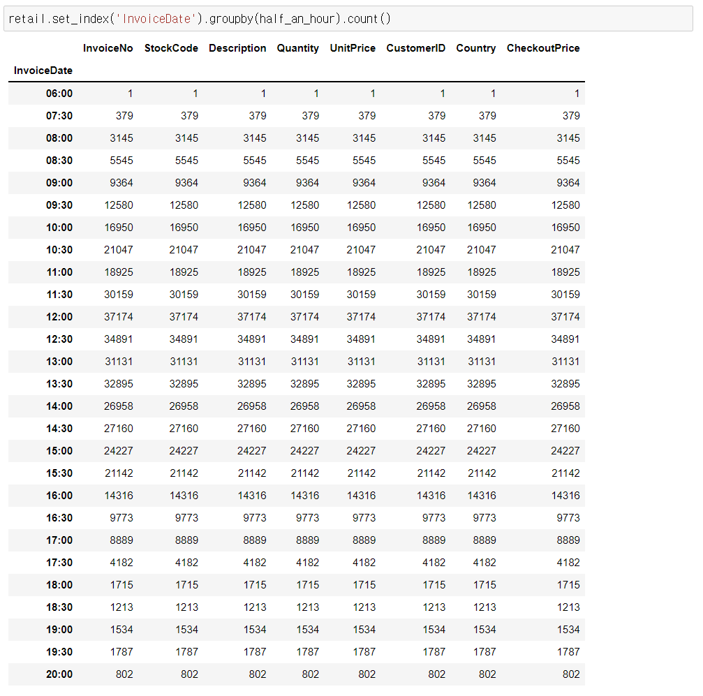 2. 30분 단위로 시간 나눈 후 주문 건수