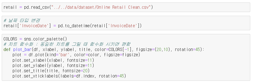 - 온라인 리테일 사이트의 2010/12 ~ 2011/12 주문 기록 데이터