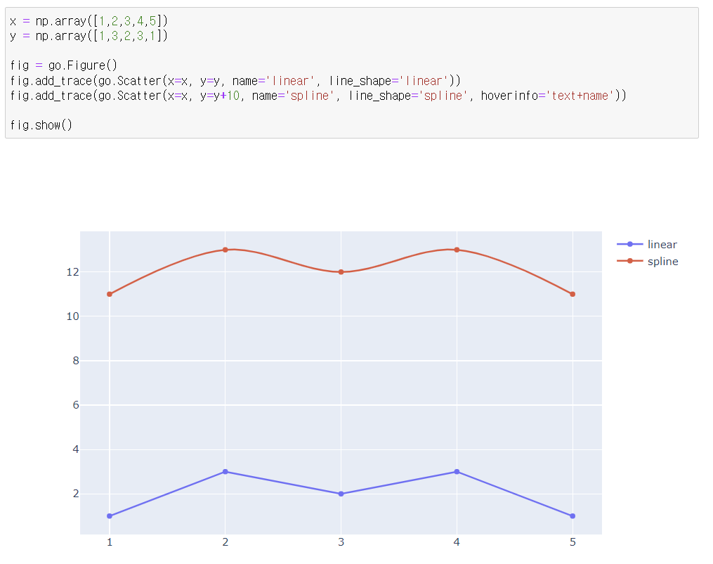 - fig.add_trace()에 그래프 객체 추가(여러 데이터의 경우 각 데이터별로 추가)
