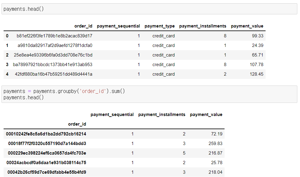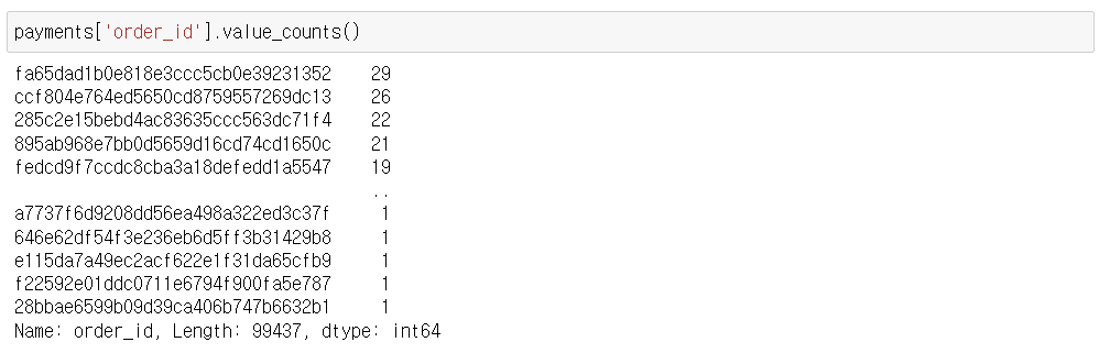 - 중복된 order_id에 대한 지불 가격 합치기(29건)