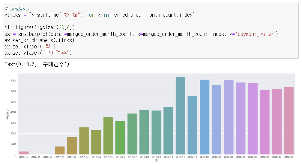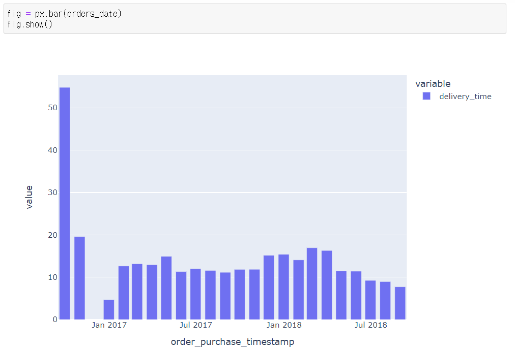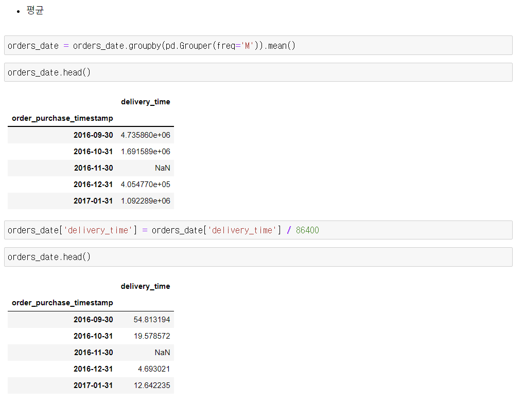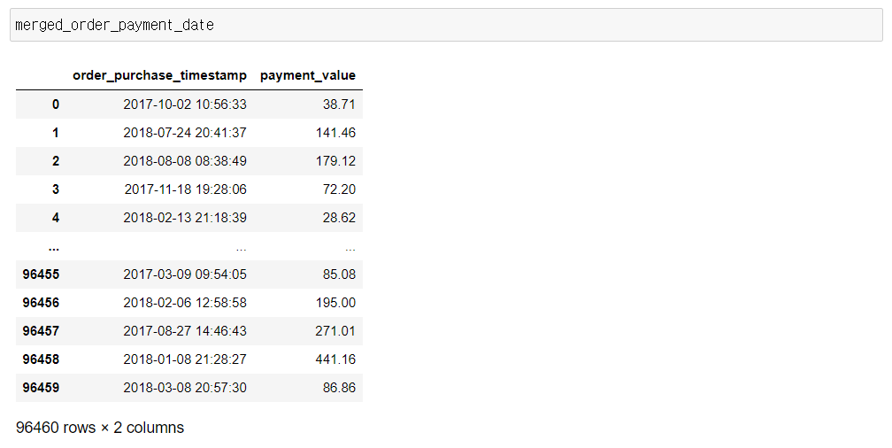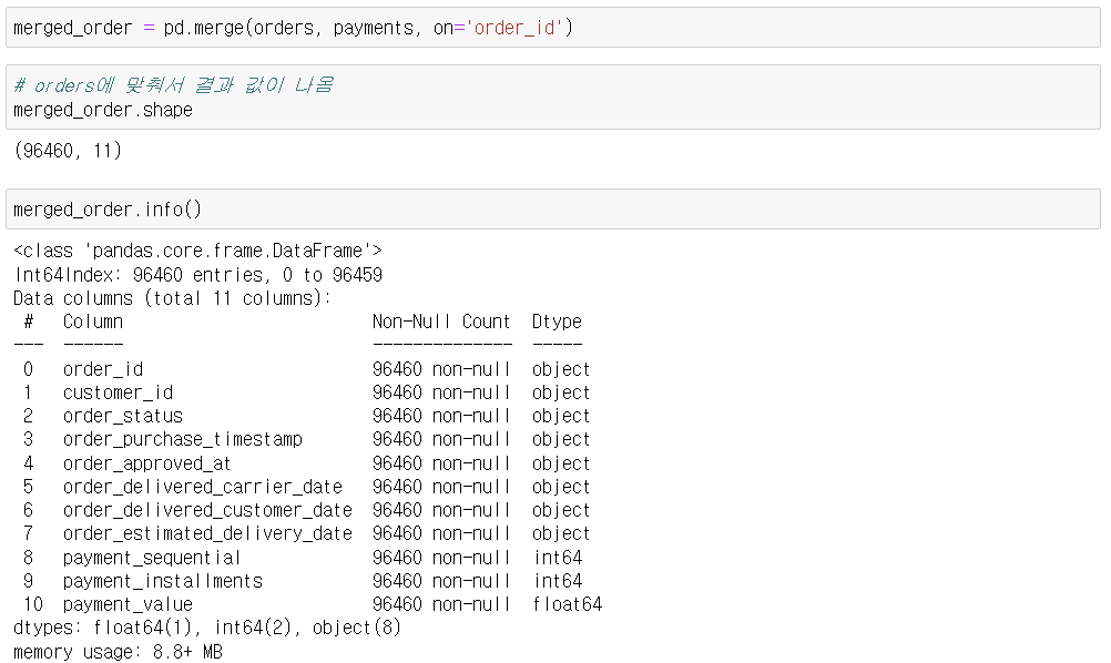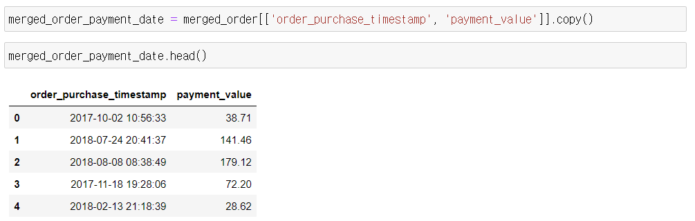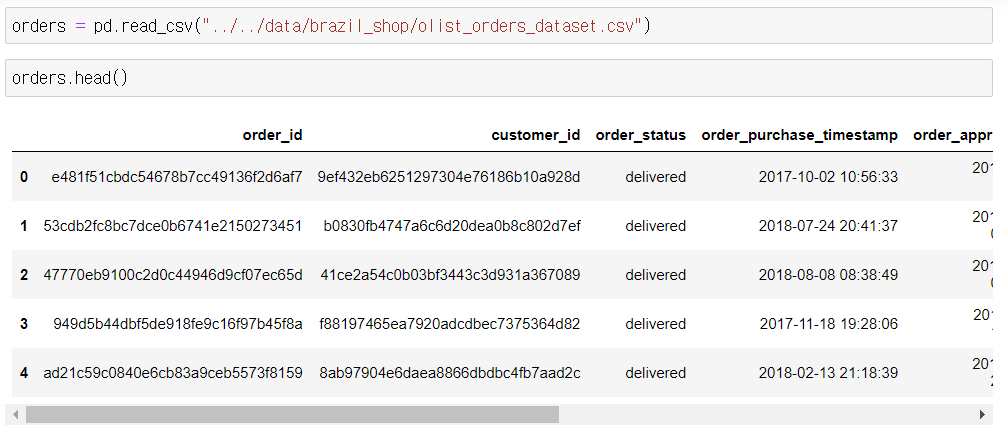 - order_purchase_timestamp ==> datetime 타입으로 변환