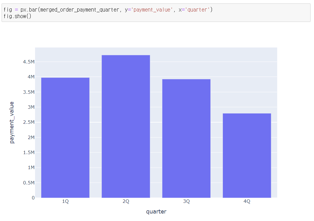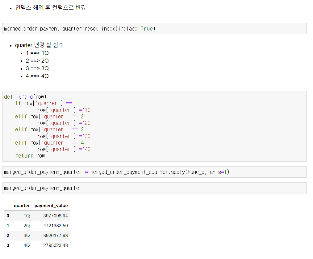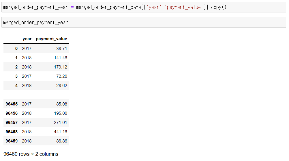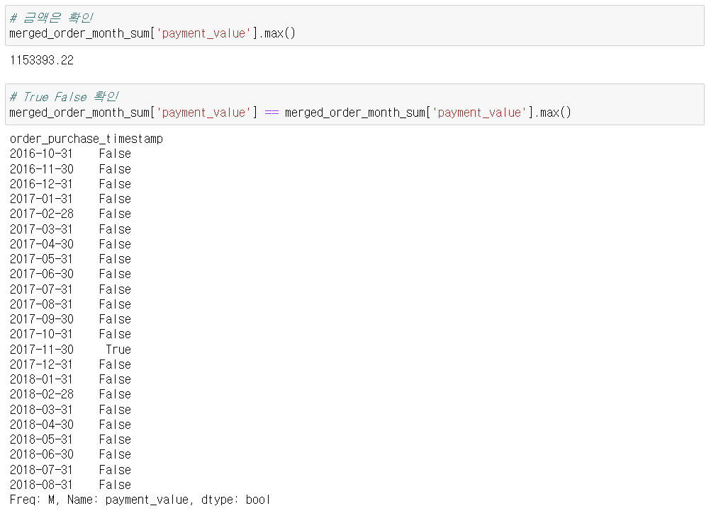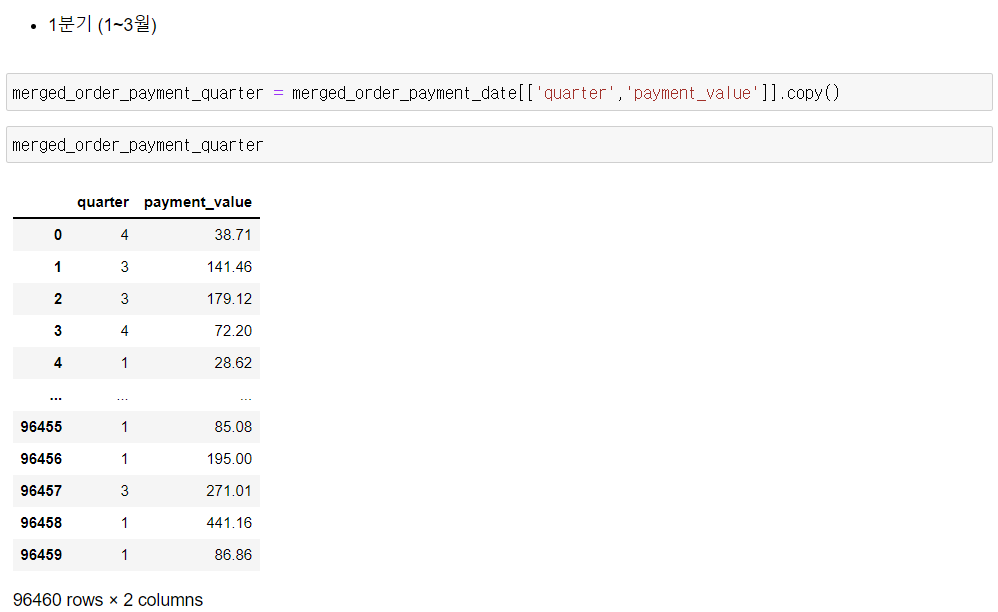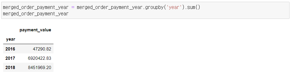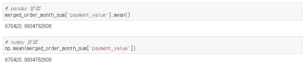 - orders의 구매 날짜와 payments의 총 구매 금액을 대상으로 월별 평균 거래액 구하기
