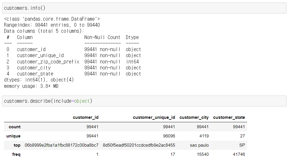 - customer_id : 고객 정보를 가지고 올 때 그냥 id 사용. 중복된 값이 없음
