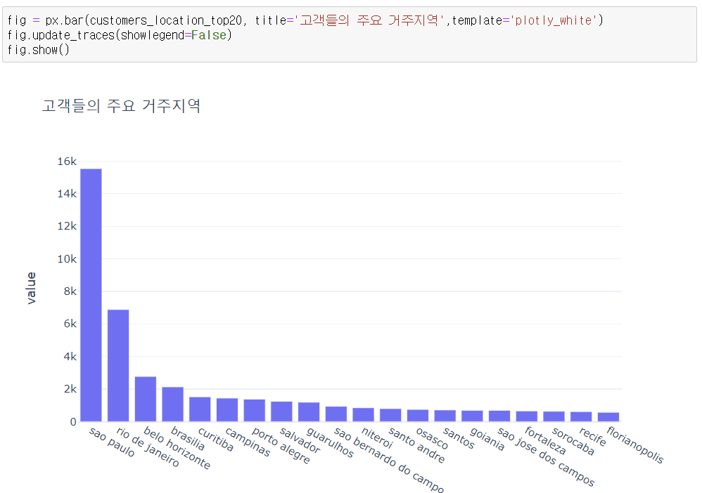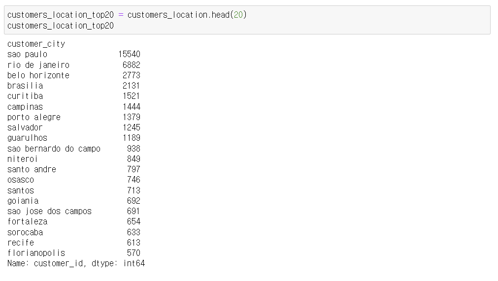 2-1) 고객이 주로 사는 지역 top20 시각화