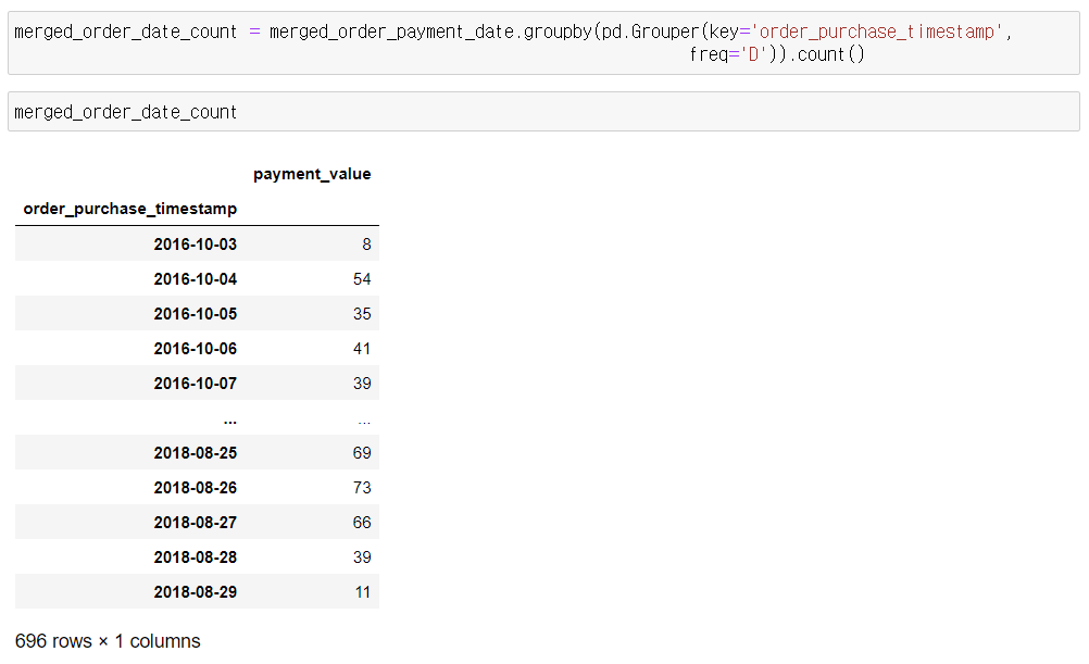 - payments와 orders ==>merge : merge_order 생성