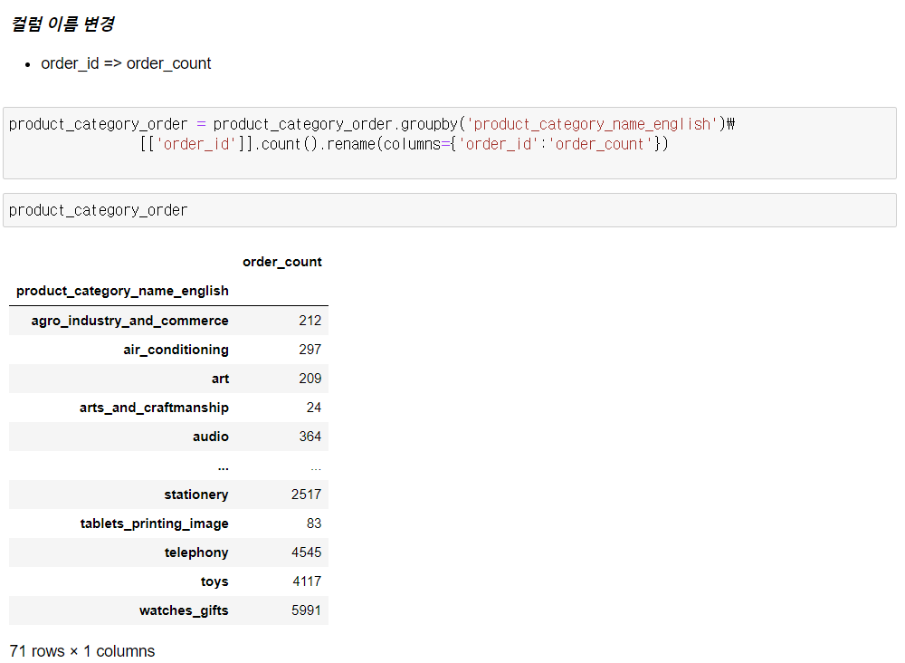 - 카테고리별로 어느 제품이 주문을 많이 받았는지 확인