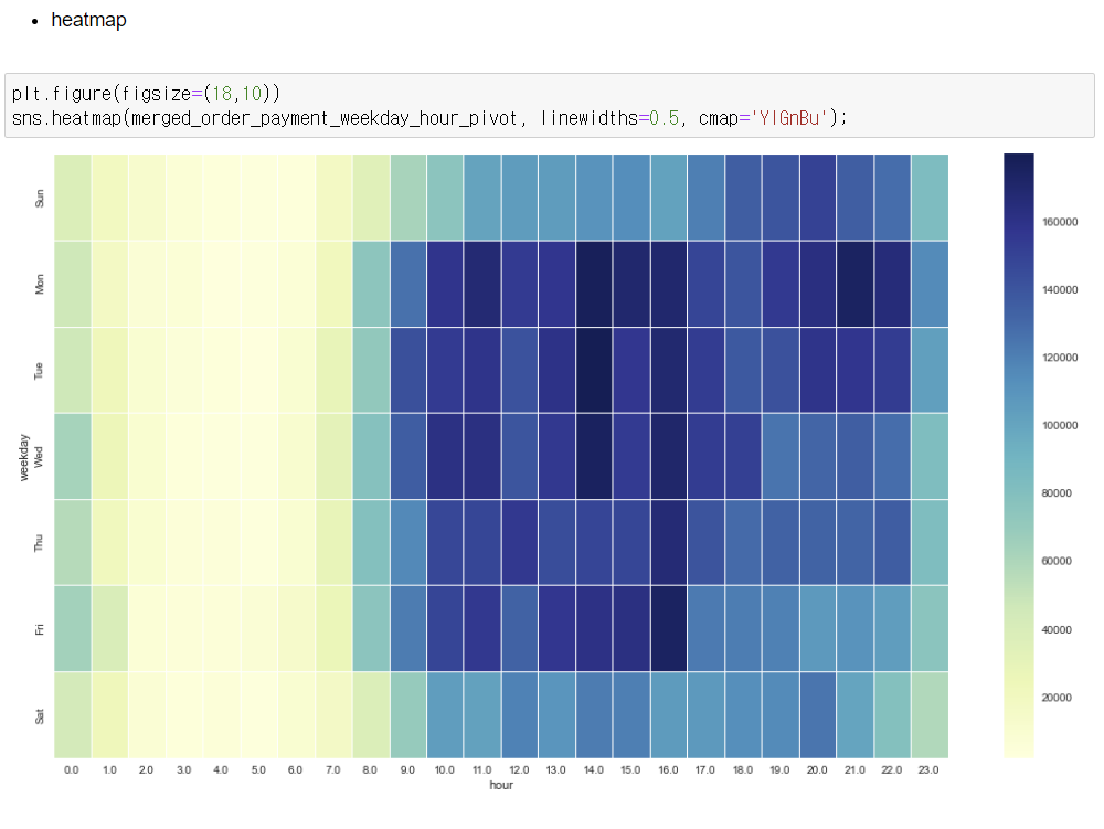8-1) 요일/시간간 거래액 상관관계 시각화