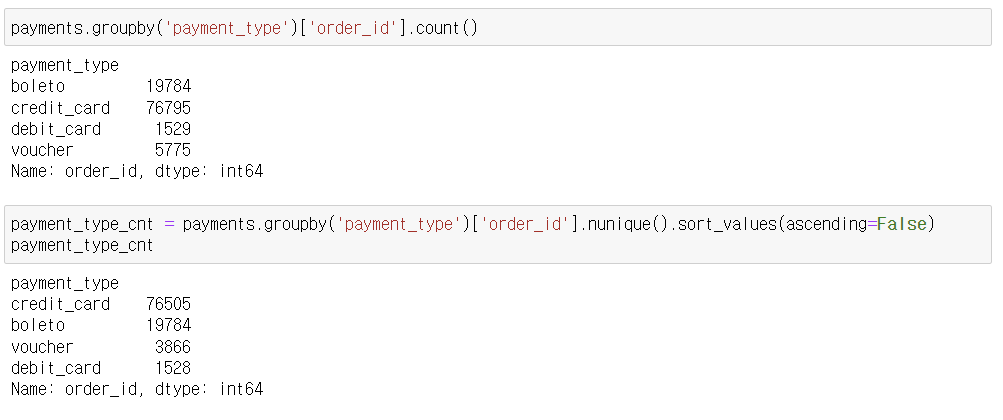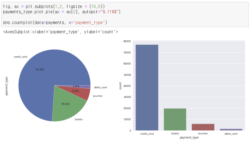2-1) 주문 아이디 ('order_id')가 있는 지불 방법 시각화