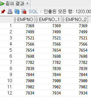 ※ 내부조인 : 일치하는 컬럼을 기준으로 값 가져오기