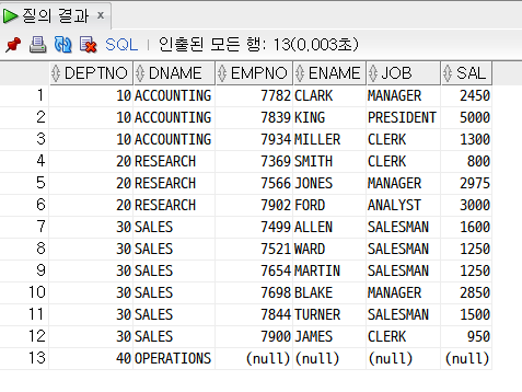 RIGHT OUTER JOIN dept d ON e.deptno = d.deptno