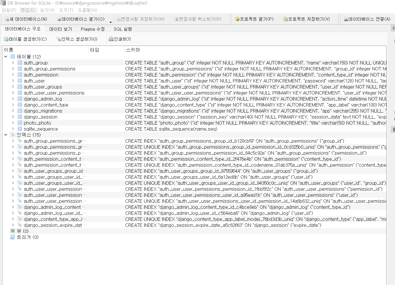 4) DB Browser for SQLite로 테이블 확인