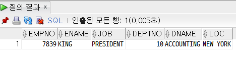 결과가 두개 뜸. 그렇기 때문에 서브쿼리가 옴. select에 두개가 왔기 때문에 where절에 두개가 와야함