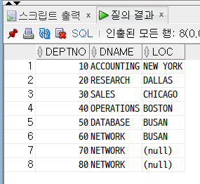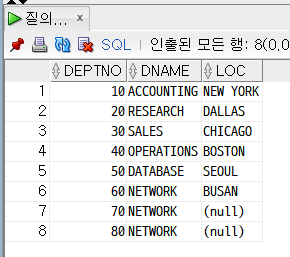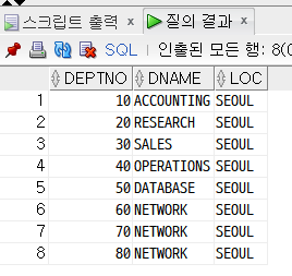 deptno가 40번인 loc가 boston에서 seoul로 변경됨.