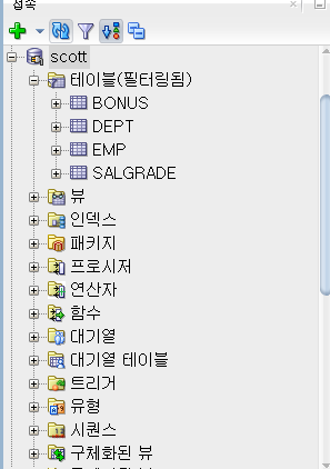 새로 고침 후 system - 다른 사용자 - scott 생성 됐는지 확인하기