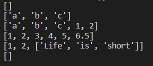 list5 = [1, 2, ["Life", "is", "short"]] # 2차원 list