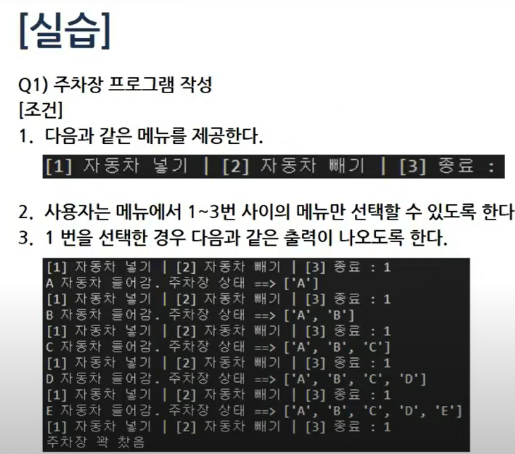 no = int(input("[1] 자동차 넣기 | [2] 자동차 빼기 | [3] 종료 : "))
