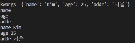 # **kwargs: 가변 파라메터를 딕셔너리 형태로 처리