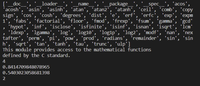 print(math.__doc__) # ddefined by the C standard # C언어 기반