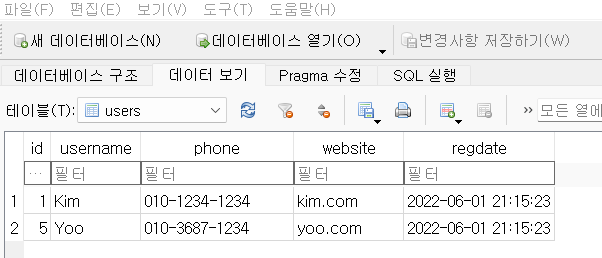 # id가 2번인 user 이름을 cho에서 hong로 변경
