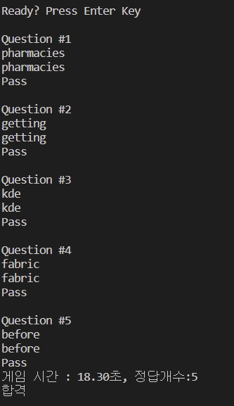 # 일치한다면 Pass 글자 출력, 정답개수 추가