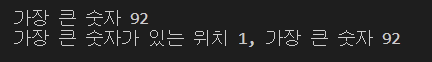 print("가장 큰 숫자가 있는 위치 {}, 가장 큰 숫자 {}".format(max_idx, list1[max_idx]))