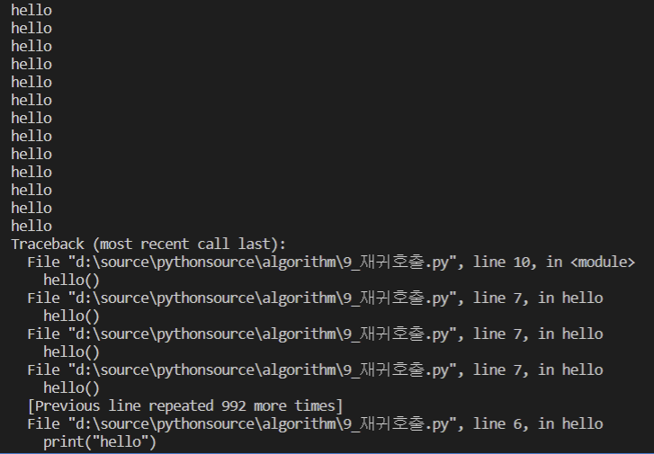 # RecursionError: maximum recursion depth exceeded while calling a Python object : 계속 호출을 많이해서 메모리에 부담되니 종료.