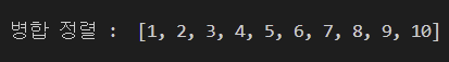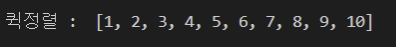 # 결과값 합치기 return quick_sort(g1) + [pivot] + quick_sort(g2)