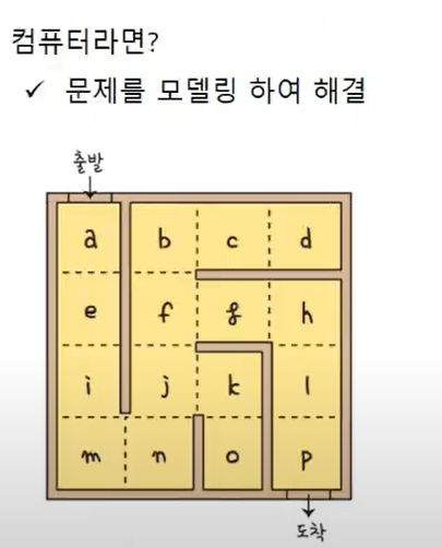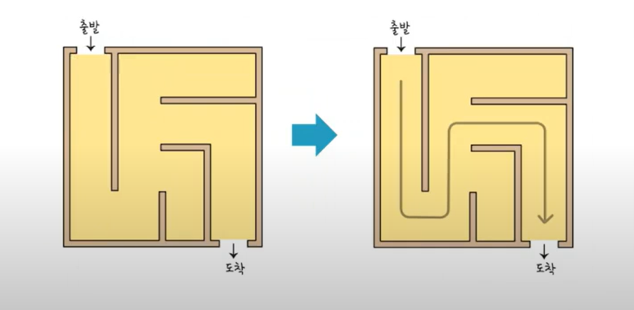 - 미로가 주어졌을 때 출발점에서 도착점까지 가기 위한 최단 경로를 찾는 알고리즘