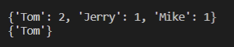 # 중간 확인. {'Tom': 2, 'Jerry': 1, 'Mike': 1}