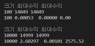 # 입력크기, 각각 알고리즘이 계산한 최대 수익