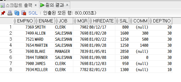 deptno가 30번 조회