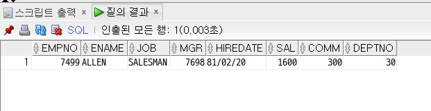 AND job = 'SALESMAN'; --salesman : 소문자로 입력시 조회가 안됨.