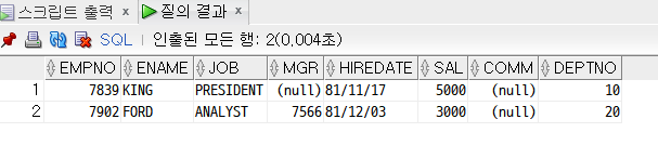 ※ 등가비교연산자 ( 같다 : = , 같지 않다 : != , <>, ^=)