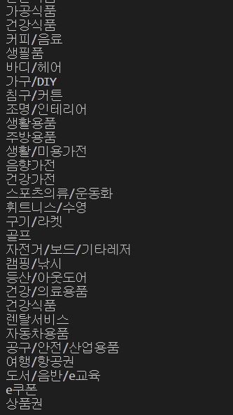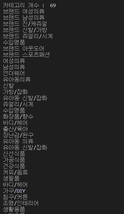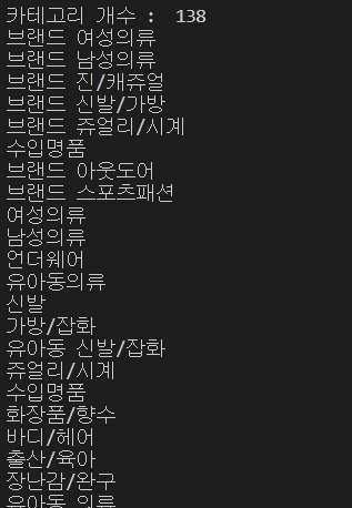 print("카테고리 개수 : ", len(item__2depth)) # 개수 알기
