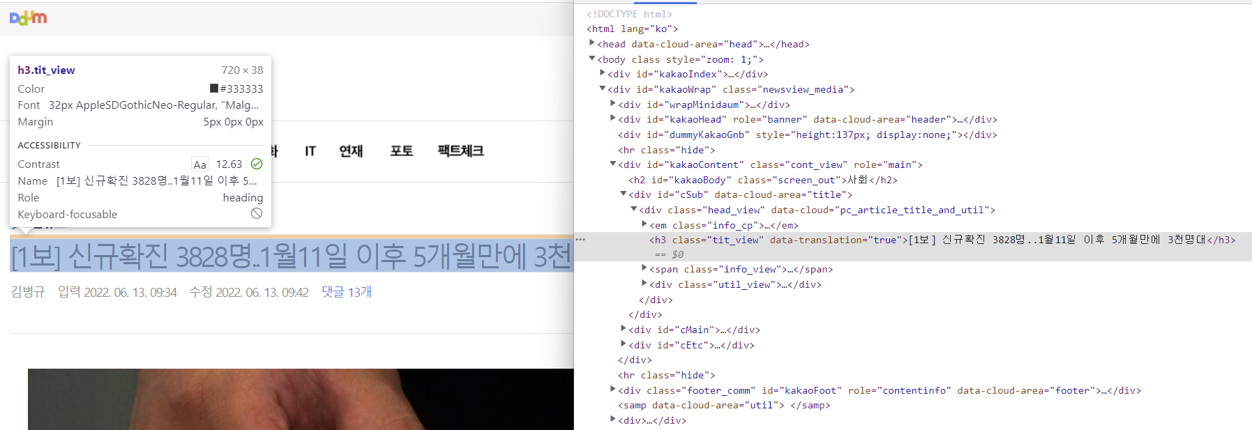 - 태그 이용(가장 처음에 만나는 태그만 가져옴)