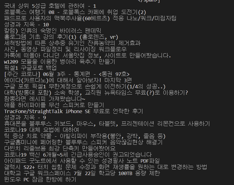 title_list = soup.select(" a.list_subject > span.subject_fixed")