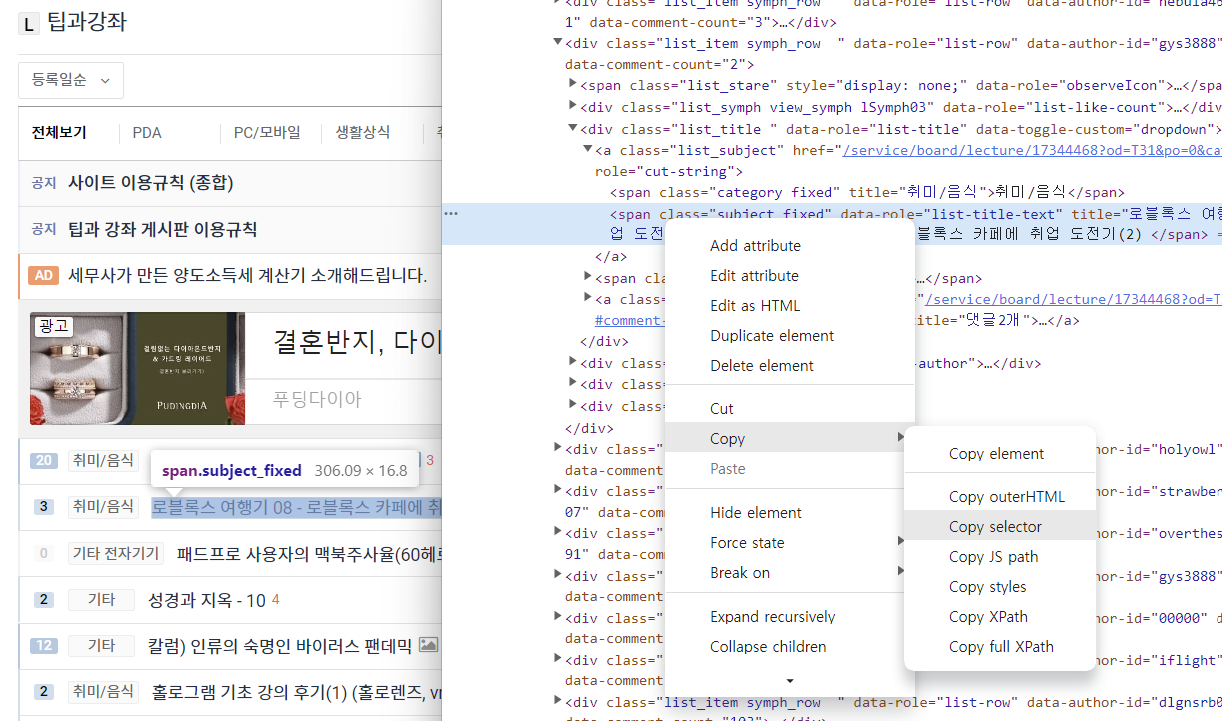 title_list = soup.select("a.list_subject > span.subject_fixed")