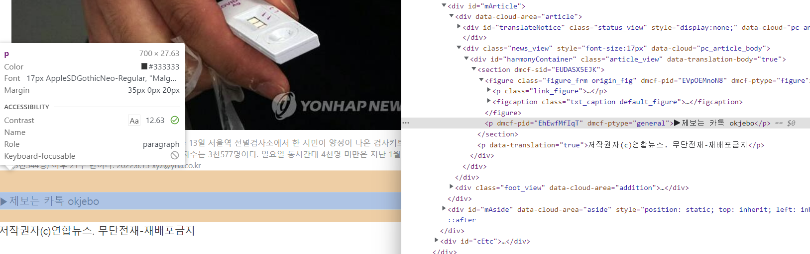 print("기사 첫 문단 내용 : ", para1.get_text())