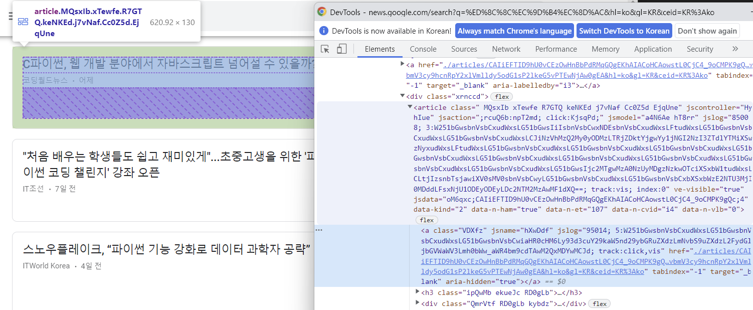구글 뉴스 클리핑(조각내서 가지고 오기)
