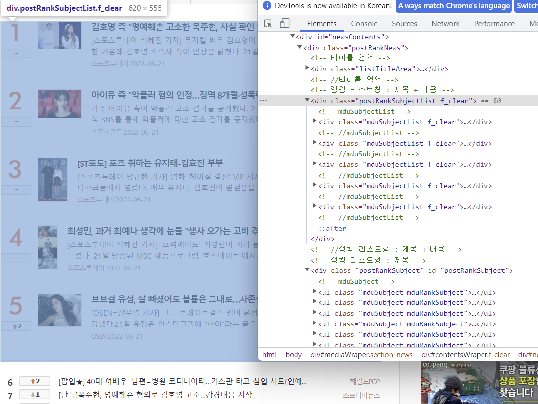 # div.postRankSubjectList.f_clear : 1위에서 5위까지