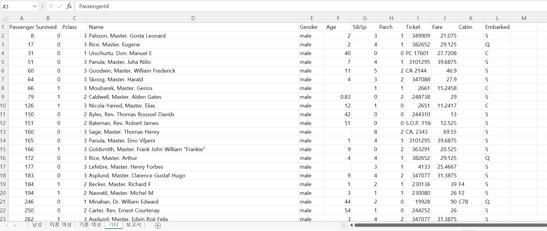 work_sheet_report.append(["미혼 여성", solo_survived, solo_unservived, solo_survived_rate])