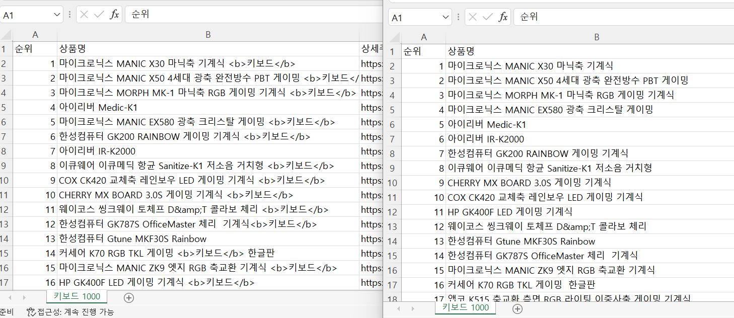 연예 랭킹 뉴스 추출, 날짜 지우기 + 엑셀 저장