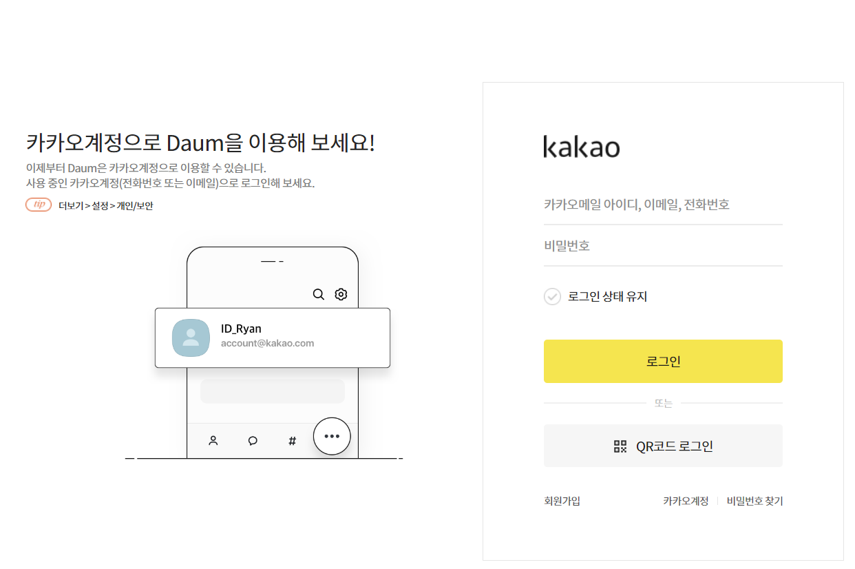 # 다음 로그인 - 카카오계정으로 로그인 클릭