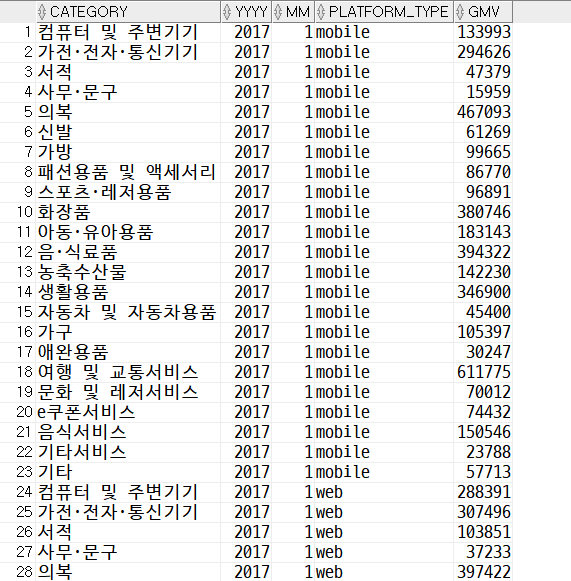 gmv_trend : 2017년 ~ 2021년 3월까지 전자 상거래 추정 거래액 (단위 : 백만원)