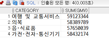 3) 매출액(카테고리)이 높은 순으로 카테고리 정렬