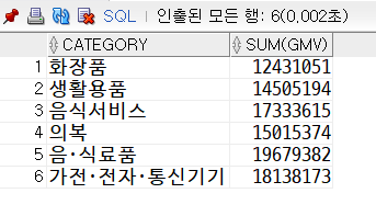 2) 특정 매출액(카테고리 - 10,000,000) 이상 카테고리 추출